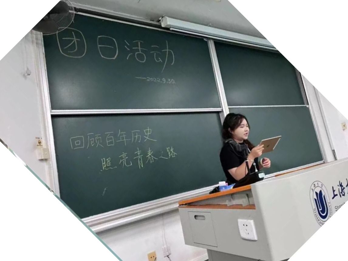 值此建团百年、建校百年的关键时间节点,新上大青年立足当下,深入贯彻习近平总书记在庆祝中国共产主义青年团成立100周年大会上的讲话精神,凭借着自信自强、富于思辨的精神,学习百年团史,发挥共青团的“政治性、先进性、群众性”,践行上大品格,践行青年的使命担当。同时,青年学生们也正面临各种社会思潮的现实影响,不可避免地会在理想和现实、小我和大我等方面遇到思想困惑,本科2022级环境工程联合团支部希望通过此次团日活动,带领支部同学再习百年共青团精神,同时也借此机会,让新生更快熟悉彼此。为了全方位地让同学们学习团史、校史,联合团支部设计了三大板块的活动。