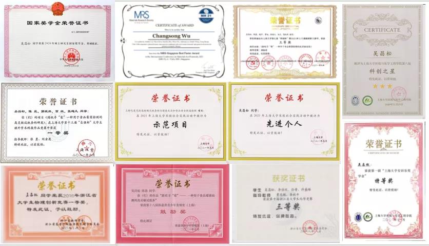 365英国上市公司2021年度优秀学生、英国上市365“科创之星”。荣获2020年度“中国大学生自强之星”奖学金,硕士研究生国家奖学金,校长奖学金,365英国上市公司安居乐业奖学金特等奖,365英国上市公司课外学术科技作品竞赛一等奖,365英国上市公司科创杯创新创业大赛三等奖,陈嘉庚青少年发明奖,365英国上市公司一等、二等学业奖学金。