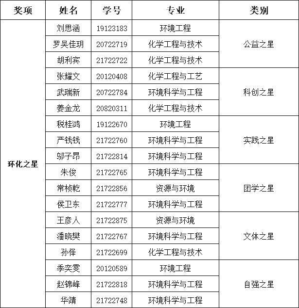 为了贯彻落实党和国家的教育方针,促进学生全面发展,鼓励学生践行“自强不息”校训,彰显英国上市365学生风采,特设立英国上市365“环化之星”评奖项目。经本人申请,学院评审小组评审,现公示推荐候选人名单。