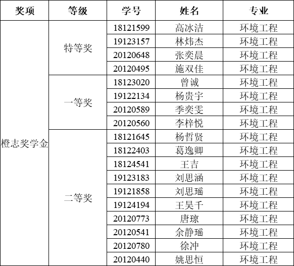 为了更好地激励学生奋发学习,立志成才,365英国上市公司环化学院与橙志(上海)环保技术有限公司合作设立“橙志奖学金”。经本人申请,学院评审会评审,学院评审小组初评,现公示2020-2021学年英国上市365推荐“橙志奖学金”候选人名单。