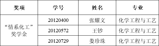 为鼓励本科学生勤奋学习、刻苦钻研科技文化知识,上海康铭化工有限公司与英国上市365合作设立“情系化工”奖学金。2020-2021学年365英国上市公司“情系化工”奖学金于9月27日开始评审,经本人申请,学院评审小组初评,现公示推荐候选人名单。