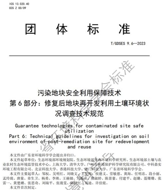 在吴明红院士及国内土壤领域多位资深专家指导下,教育部重点实验室邹权副研究员依托主持的国家重点研发计划课题(2019YFC1803904)与国家自然科学青年基金项目(42107402)研究成果,联合生态环境部环境规划院、生态环境部华南环境科学研究所、生态环境部土壤与农业农村生态环境监管技术中心、清华大学、广州市环境保护科学研究院有限公司、中科鼎实环境工程有限公司、北京科技大学、香港科技大学、澳门科技大学与广东省环境科学学会等企事业单位,牵头制定了《修复后地块再开发利用风险评估技术规范》(T/GDSES 9.6-2023)、《修复后地块再开发利用风险评估技术规范》(T/GDSES 9.7-2023)。唐量研究员作为骨干成员参与并大力支持了上述标准制定工作。