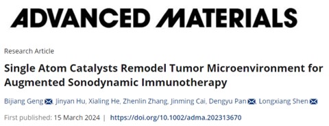 近日,我院潘登余教授团队青年教师耿弼江在国际高水平期刊《Advanced Materials》(IF:29.4)上发表题为“Single Atom Catalysts Remodel Tumor Microenvironment for Augmented Sonodynamic Immunotherapy”的研究论文。