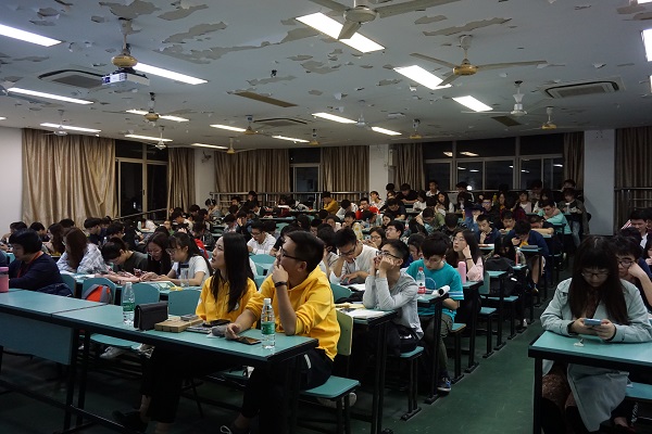 分享环节中,李振斌同学分享了自己的故事:他用众筹的方式导演的毕业MV曾登上学校毕业典礼的舞台,曾出现在金校长的朋友圈中,还曾站上国奖领奖台等等。他让同学们明白,一个好的平台可以为一个人带来怎样的进步与成功。而王安琪同学则是从课程、导师制度、奖学金机制等为同学们更为详细的介绍环化,且以自身的优秀告诉大家,"不是说选择了环化就一定能闪闪发光走上人生巅峰,但对于合适的人来说必然会是一个好平台"。还有优秀的研究生邹昊呈则是用更为丰富的历练来给大家答疑解惑,环境专业是一个综合性的专业,只要具备了学科基础,你可以以此为跳板去找到不同的工作,给自己更广阔的的发展空间。