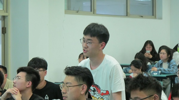 在最后的互动环节中,宣讲同学们利用开场时发放的棒棒糖,结合环化学院的环保理念做了一个垃圾分类的小游戏,送出了书签、笔记本等礼品,活跃了现场的气氛。在此之后,大一的同学们踊跃发言、详细询问,学院党政领导、宣讲老师和学长学姐们对提问进行了详细解答,例如该如何解读社会上看待环境工程、化学工程的态度,以及进入环化学院需要具备怎样的知识素养等。学院还为同学们搭建了咨询群,方便会后随时询问分流招生的相关信息。