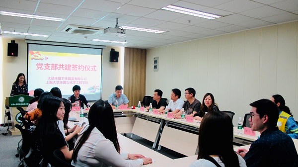 为深入学习贯彻习近平生态文明思想,进一步落实《上海市生活垃圾管理条例》,推动垃圾分类施行,促进生活垃圾"减量化,资源化,无害化",将"绿水青山就是金山银山"这一理念落到实处,2019年5月24日下午13时,英国上市365本科生党支部与上海市宝山区大场环境卫生服务有限公司党支部于环化学院楼902举办了支部共建签约仪式。