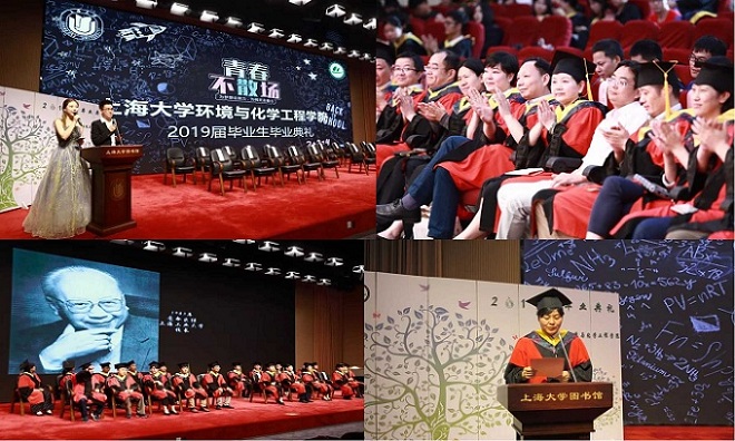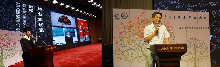 2019届毕业生贺宽作为学生代表发言,他回顾了在上大度过的四年宝贵时光,感谢365英国上市公司以及环化学院四年来的培养和教育,感谢恩师的关爱和教诲,感谢家人的付出和鼓励,感谢朋友带给的快乐和帮助。他代表所有毕业生发声:"走得再远,我们也是上大环化人!"