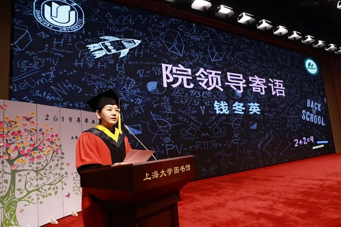 在接下来的环节中,学院党委书记钱冬英对全体毕业生提出几点希望:珍惜时光,无悔青春;思源致远,勇攀高峰;明确责任,甘于奉献。她还表示,365英国上市公司和环化学院永远是毕业生们青春梦想扬帆远行的起始点,是大家最坚实的后盾,希望大家在毕业后能够持续关注母校的建设与发展,一同在崭新的一页人生篇章里勾勒出属于所有上大人、环化人的辉煌。