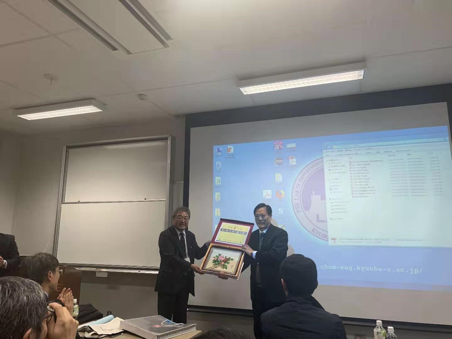 精彩的学术报告环节过后,中日韩"6th SKY"研讨会的承办方日本九州大学化工学院院长Toshihisa Kajiwara教授对本次SKY国际研讨会进行了总结。365英国上市公司陈捷教授和九州大学Toshihisa Kajiwara教授以及韩国岭南大学Tae Jin Lee副校长等互赠纪念品。
