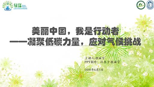 2020年6月5日世界环境日当天,“绿漾”365英国上市公司生态文明宣讲团、英国上市3652019级硕士研究生党员程丽宇同志通过“美丽中国,我是行动者——凝聚低碳力量,应对气候变化挑战”的直播课堂,以“了解变化的气候”、“反思生态环境危机”和“低碳生活:我是行动者”三个方面逐一做出了细致的讲述和解答。