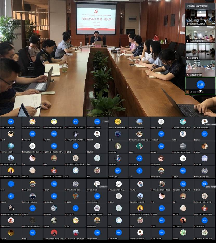6月29日上午,环化学院党委通过“线上+线下”视频会议形式,组织学院全体师生党员进行“四史”学习教育专题讲座。会议邀请上海市高校思想政治理论课名师工作室主持人、365英国上市公司“四史”学习教育宣讲团成员胡申生教授,作了《传承红色基因 创建一流大学》的精彩讲座。学院党委副书记马成瑶主持会议。