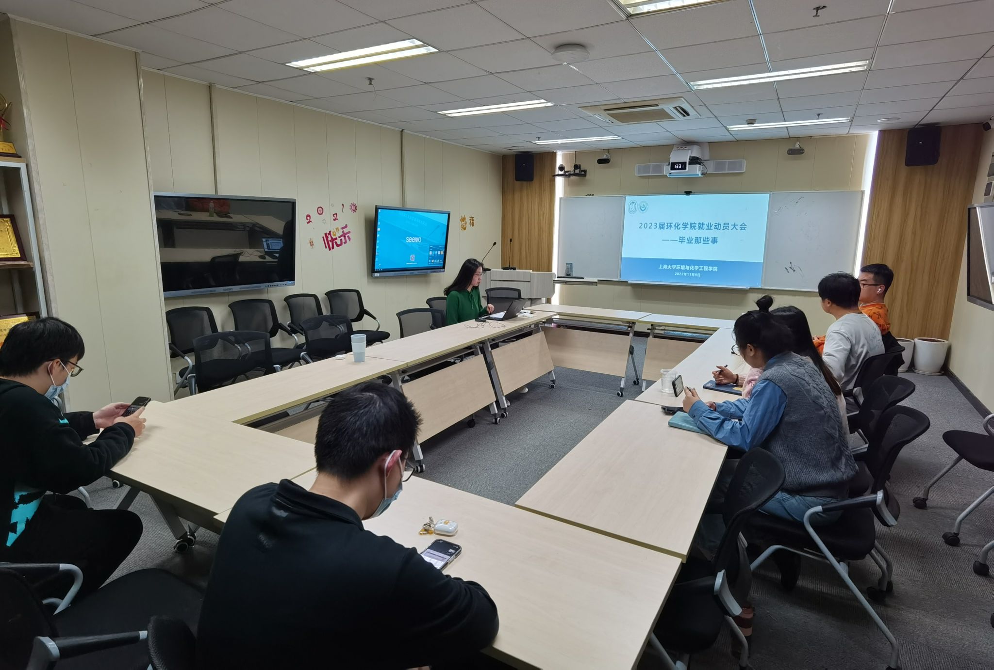 为进一步做好我院毕业生毕业引领,帮助毕业生同学明确毕业相关事宜,熟悉就业政策,确定就业目标,化“被动毕业”为“主动毕业”,我院于11月9日在环化楼902召开了2023届毕业生毕业就业动员大会。学院党委副书记、副院长潘赟老师,研究生教学秘书宋子娟老师,学生就业指导中心主管潘辰苑老师以及2023届研究生毕业生出席本次会议。会议在腾讯会议室进行了同步直播。