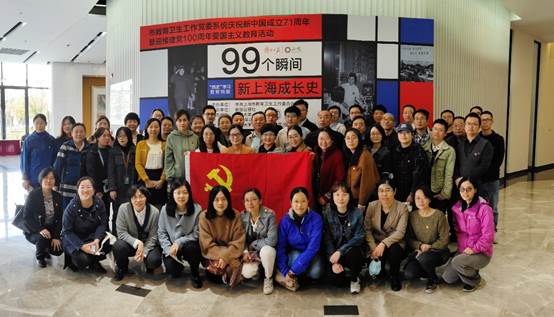 11月13日,环化学院党委中心组成员和教工党员前往钱伟长图书馆,参观《99个瞬间——新上海成长史》“四史”教育影像展。