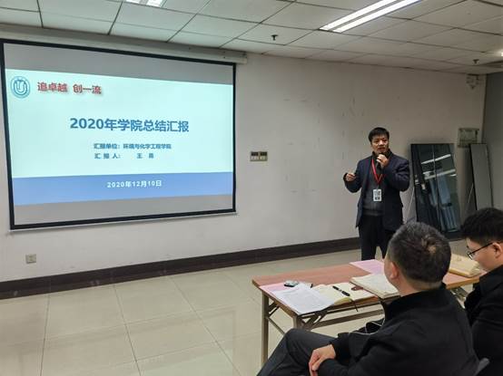 随后,学院主持工作副院长王勇代表学院班子从卓越指标完成情况、2020年工作亮点和2021年工作目标等方面做了工作汇报,展示了环化学院2020年在疫情防控、学科建设、科学研究、人才培养、社会服务和就业工作等各方面取得的优异成绩和学院进一步发展方向。