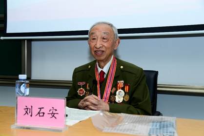 一堂红色党课,让学院青年师生们眼里闪烁着兴奋和敬仰的光芒,出生在和平年代的他们被一位特殊的老师吸引,当军服上挂满军功章的90岁的刘石安老战士走进教室时,全场响起了热烈的掌声。