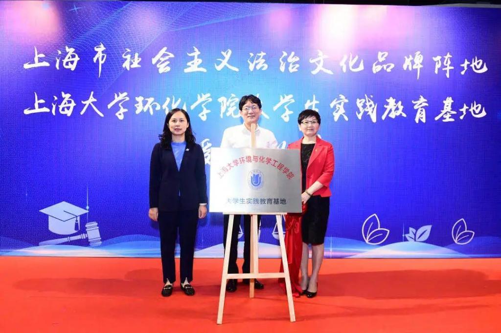 在热烈的掌声中,市高级人民法院副院长陈昶,英国上市365党委书记钱冬英和市环科院纪委书记何春茜共同为“英国上市365大学生实践教育基地”揭牌。