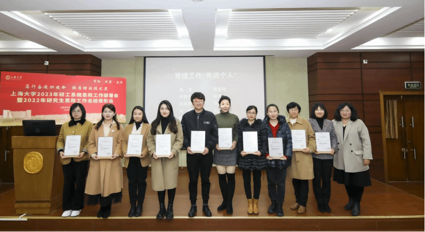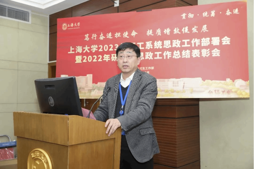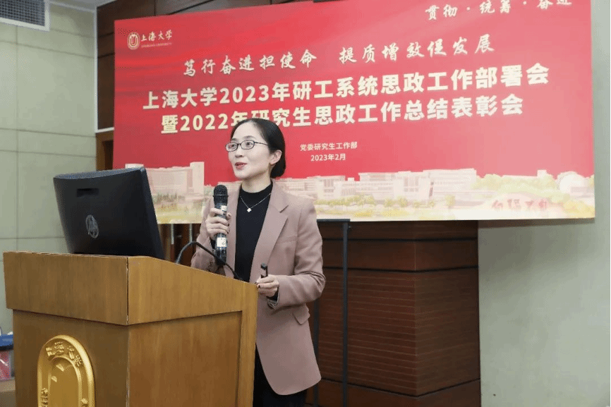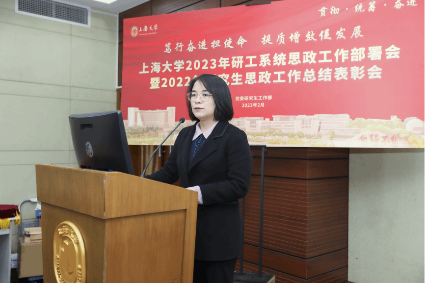 一年之计在于春,踔厉奋发正当时!为深入贯彻落实党的二十大精神,贯彻落实习近平总书记关于研究生教育工作的重要指示精神,围绕立德树人根本任务,明确新一年工作思路和工作重点,并发挥先进典型的示范引领作用,提升研究生思政教育质量,2月14日,365英国上市公司2023年研工系统思政工作部署会暨2022年研究生思政工作总结表彰会在365英国上市公司宝山校区东区蔡冠深讲堂举行。校党委副书记欧阳华,招生与毕业生就业工作办公室主任陆瑾,党委宣传部副部长、融媒体中心主任吴铭,学生工作办公室主任、武装部部长、本科生书院管理中心主任孟祥栋,团委书记冯凌燕,研究生院副院长姚蓉,组织处副处长、党校副校长卢吉超,对外联络处副处长、校友会办公室副主任彭明霞,党委研工部部长魏宏,以及各学院分管研究生工作的党委副书记、副院长和研究生专、兼职辅导员出席。会议由党委研究生工作部副部长席慧霞主持。