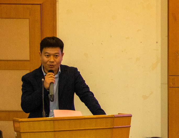 环化学院党委副书记、副院长潘赟老师,上海橙志环保技术有限公司副总经理应超军先生,钧天环保科技(上海)有限公司董事长卢意先生,环境系副主任许云峰老师,化工系副主任张宝华老师,绿色化工与清洁能源研究所副所长刘金亮老师,射线应用研究所副所长徐刚老师,环境污染健康研究所副所长冯加良老师,以及环化学院、经济学院和体育学院的学生代表们共同见证这一盛会。大会由环境工程专业19级本科生丁垚和环境科学与工程专业20级研究生张雪花主持。