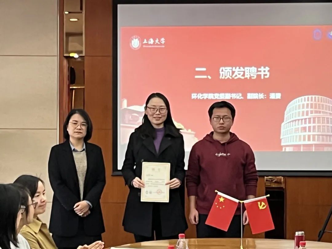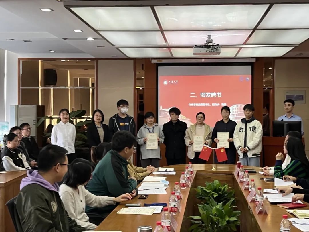接着,进行第二项议程,宣读2022级研究生班主任聘任名单,由潘赟老师颁发聘书并合影。