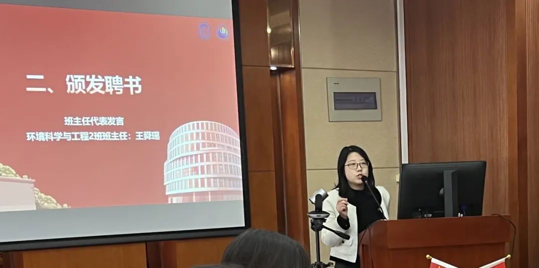 黄渊老师为此次聘任仪式致开场辞。他介绍了学院的历史和传承,并指出班主任是班级的组织者、领导者、教育者,在学生个体的发展中有着不可替代的作用。班主任在任期间主要指导和协助班级建设,及时了解学生的思想动态,关注班级学生学业就业压力和心理健康,形成良好的师生互动机制。路虽远,行则将之,师生需共同努力,将班级建设成为助推学生成才、推动学院发展的活跃细胞。