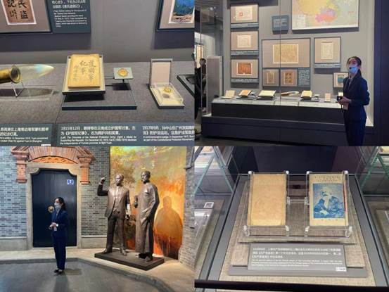 中共一大纪念馆新馆坐落于一大会址东南侧,外观仍保留了石库门建筑特色,进入大厅,迎面就是巨幅壁画,天安门和延安宝塔等标志性建筑与祖国美好山川交相呼应、十分庄严豪迈,一幅热血的历史画卷就此展开。中共一大通过了中国共产党第一个纲领和第一个决议,宣告中国共产党正式成立。展览以“初心使命”为主线,包括“序厅”、“前仆后继救亡图存”、“民众觉醒主义抉择”、“早期组织星火初燃”、“开天辟地、日出东方”、“砥砺前行光辉历程”和“尾厅”七个板块。展览采用文物实物、图片图表、油画雕塑、实景还原、多媒体声像等多种展示手段,生动展现了中国共产党诞生和发展壮大的跌宕风云,让人从时间、空间的双重维度读懂了这一历史必然。