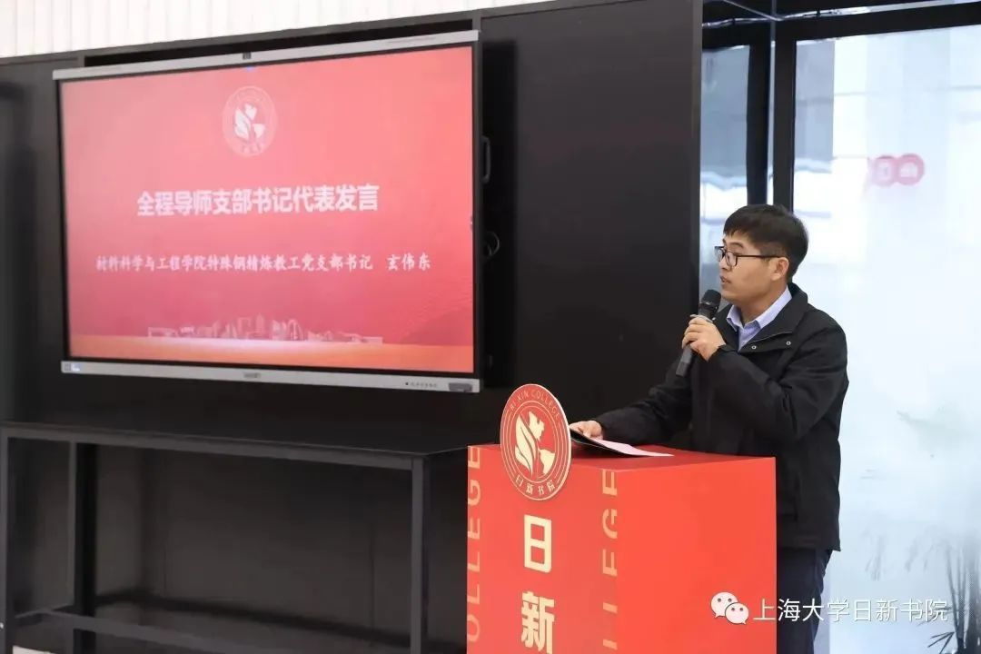 全程导师支部书记代表材料科学与工程学院特殊钢精炼教工党支部书记玄伟东发言,玄老师对支部共建的意义表示肯定,表示在今后的工作中在“学”上强基础、在“问”上做解惑、在“思”上做睿智、在“辩”上做助力、在“行”上做致用,更好的参与书院工作,助力学生学有所获。