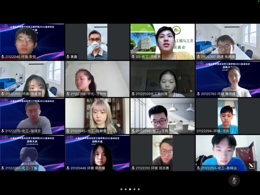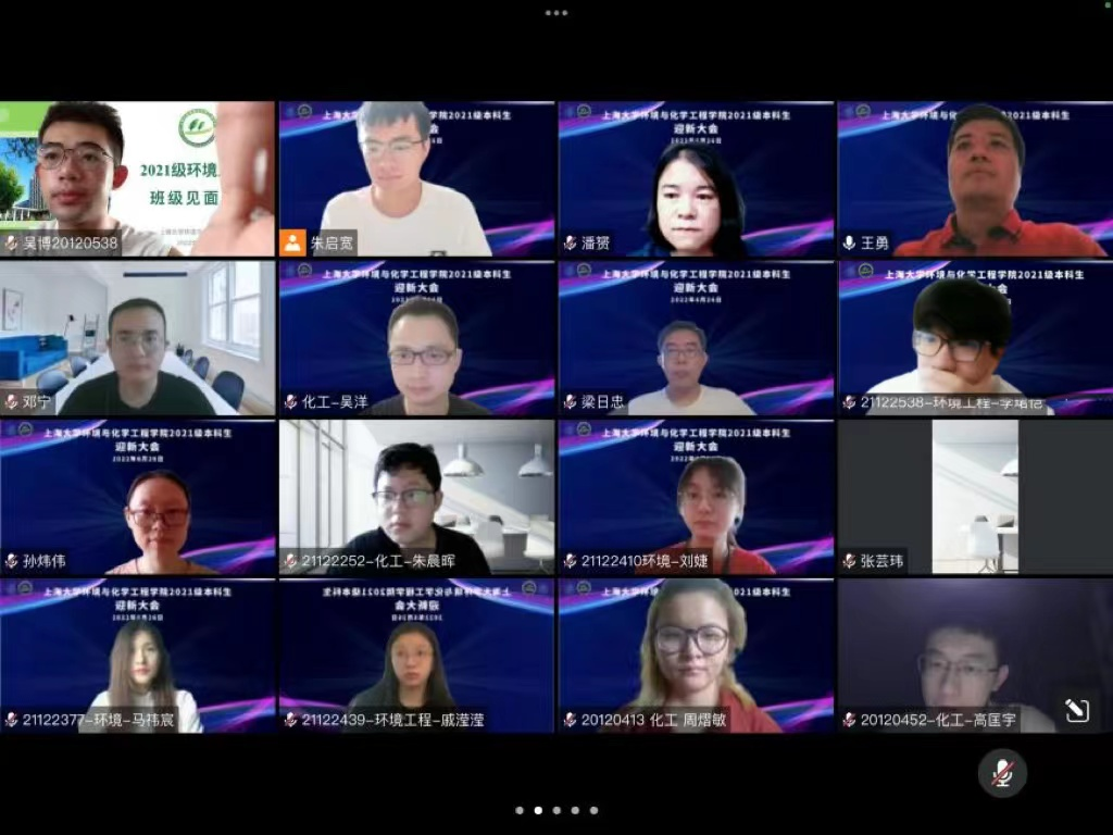 6月26日上午,我院在线上举行2021级本科生迎新大会。学院常务副院长王勇,党委副书记、副院长潘赟,副院长黄鑫,环境系副主任许云峰,化工系副主任孙炜伟,本科生教学秘书梁日忠,2021级班导师邓宁与吴洋,辅导员朱启宽,导生代表以及2021级全体新生参与本次活动。