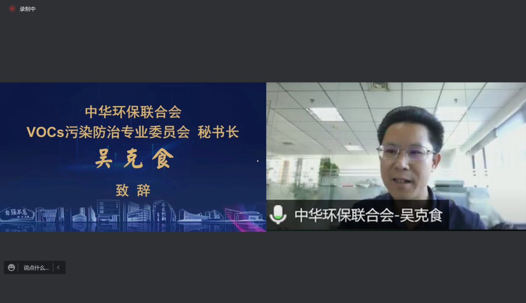 中华环保联合会VOCs污染防治专业委员会秘书长吴克食代表中华环保联合会发表致辞,他表示本次专项活动意义深远,只有不断推动政产学研社深度合作,才能集最大合力,向污染开战,向净化集结,向美好出发,向未来奔去。他希望以本次访企拓岗交流活动为切入点,进一步扩大合作,积极探寻产学研结合的新思路,积极探讨人才培养的新方法。
