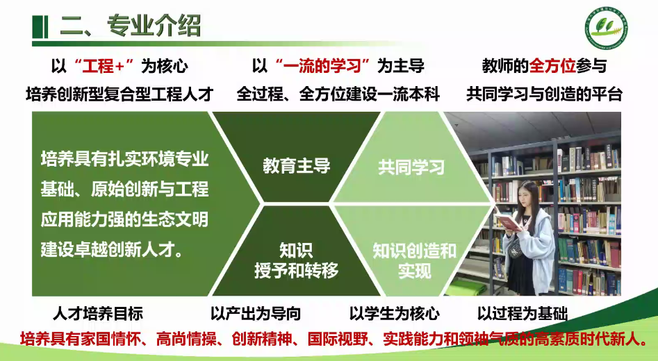 英国上市365以习近平新时代中国特色社会主义思想为指导,将培养环境工程卓越创新人才、服务国家生态文明战略作为自身使命。以“工程+”为核心,“一流的学习”为主导,教师全方位参与,致力于培养具有家国情怀、高尚情操、创新精神、国际视野、实践能力、领袖气质的高素质时代新人。