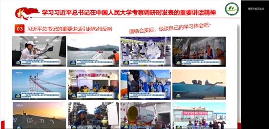“青年的价值取向,决定了未来整个社会的价值取向,抓好这一时期的价值观养成十分重要。”乔老师首先指出,党的十八大以来,习近平总书记曾先后23次前往大学校园考察,这充分体现他对青年大学生始终如一的关注、关爱和关心。随后,乔老师根据习近平总书记在中国人民大学考察的空间顺序,深入浅出地解读讲话精神。集体学习后,与会学生积极交流学习感想和思考,他们表示习近平总书记的讲话鼓舞人心、催人奋进,今后将牢记总书记嘱托,立志民族复兴,不负韶华,不负时代,不负人民,争做堪当民族复兴重任的时代新人。