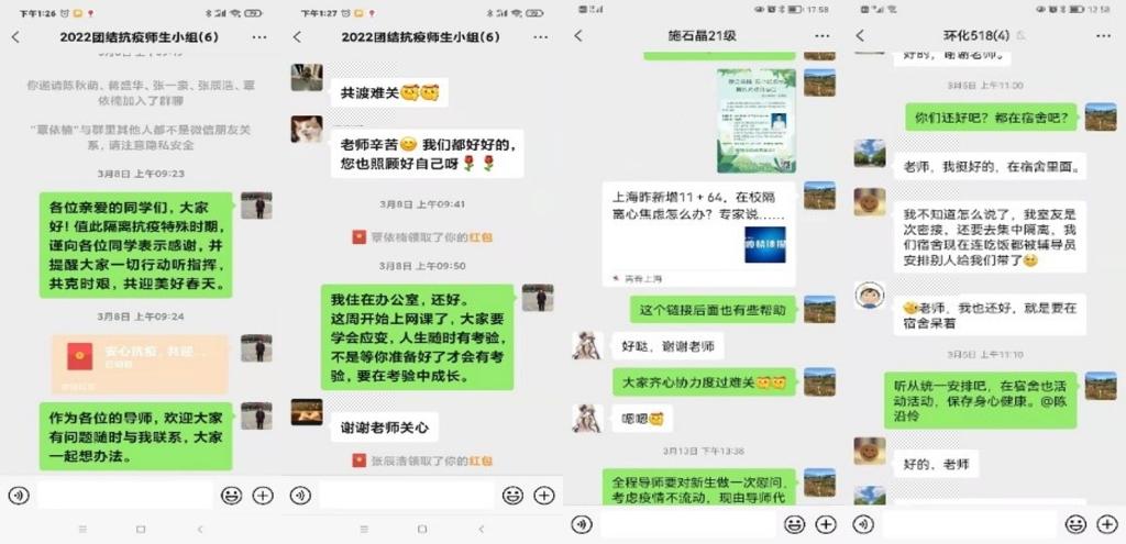疫情期间,停课不停学,支部老师们积极通过超星平台建课,并结合腾讯会议、微信课程群等互动平台,加强与学生的交流,确保春季课程有序开展。同时,支部还组织建立“团结抗疫师生群”,加强与学生的沟通,及时关心学生身体状况及心理状态,为学生带去温暖和关怀。