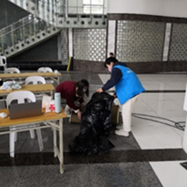 疫情期间,为响应号召,她积极参与到学校抗疫志愿服务中。在伟长楼志愿服务期间,统计师生们的意见与建议并及时上达,帮助同学搬运物资解答疑惑,提醒新入住人员登记信息并网格化处理,统计伟长楼内师生人数等。