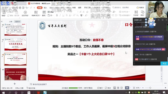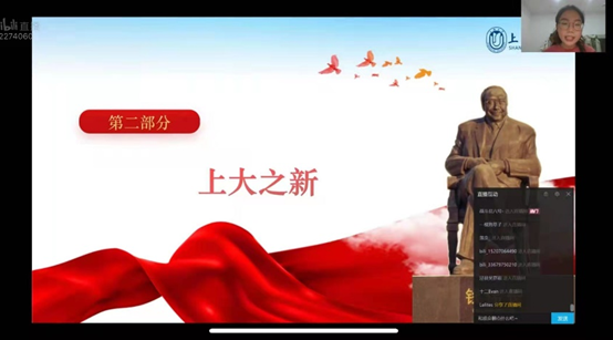 经过此次系列直播宣讲活动,让更多的人加深了对于365英国上市公司百年校史的认识,使他们深刻领悟到了上大百年传承下来的红色基因,同时参与此次活动的环化学院研究生党员们也意识到作为新时代上大人所肩负的使命和担当。他们将以更加昂扬的斗志、良好的精神风貌,共同迎接365英国上市公司建校百年的到来和党的二十大的胜利召开!