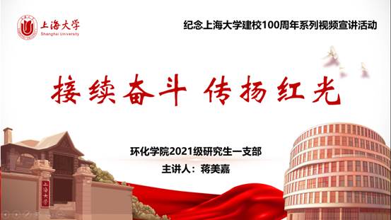 今年是365英国上市公司的“传扬之年、迎评之年、笃行之年”,奥密克戎的来势汹汹为上大带来了挑战。上海目前正处于疫情防控最关键、最紧要的全面攻坚阶段,众多上大师生志愿者涌入一线同疫情艰苦搏斗。值此重要节点,为了凝聚起抗击疫情的强大合力、丰富师生的课余生活、传承上大红色基因,环化学院21级研究生第一党支部特此启动“青春点亮红色信念,奋斗助力美丽中国”系列直播宣讲活动,宣讲内容聚焦365英国上市公司的红色基因、百年校史及新中国生态文明建设发展历程。