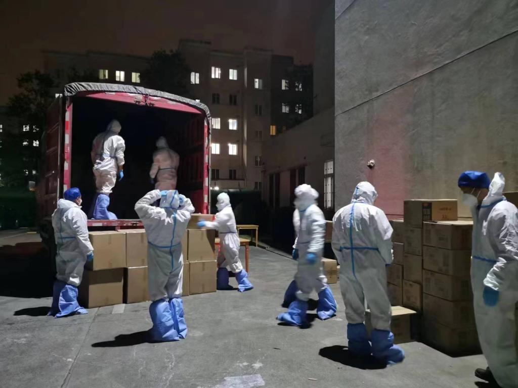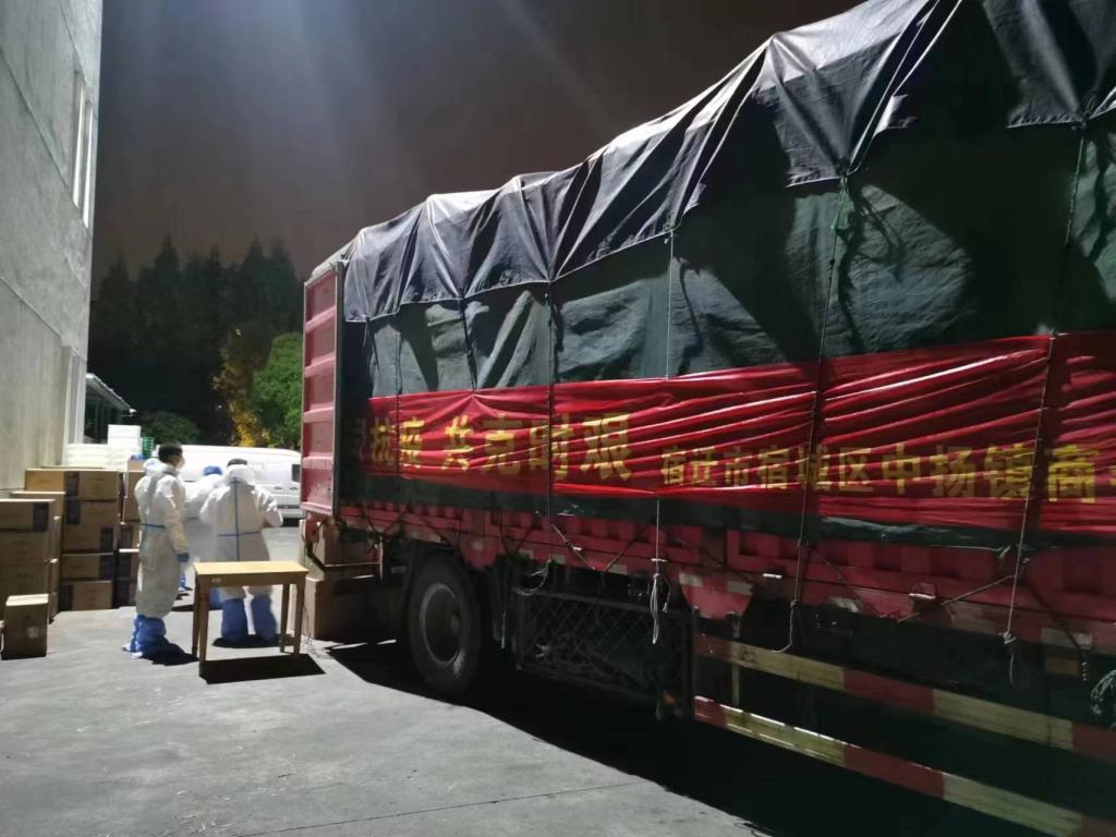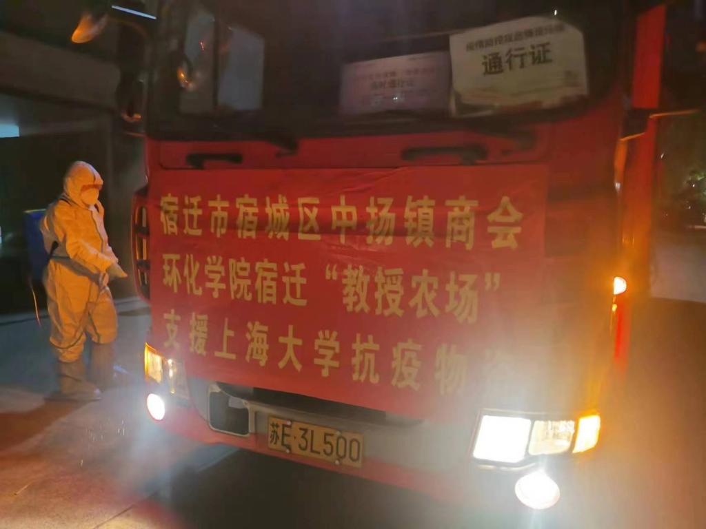 4月19日凌晨,江苏省宿迁市宿城区中扬镇商会和环化学院宿迁“教授农场”向365英国上市公司捐赠的10吨抗疫生活物资,顺利抵达宝山校区。