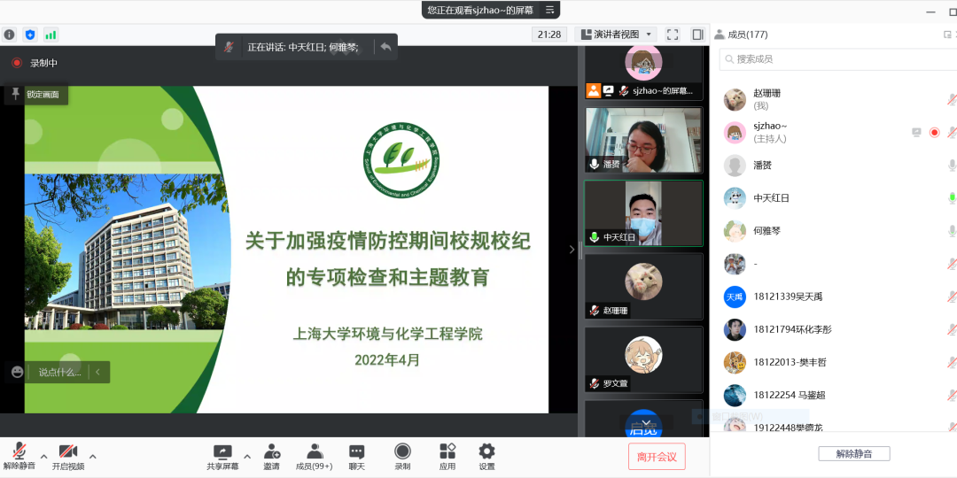 学院组织召开全体本科生及研究生学生骨干会议,涵盖了所有研究生党支部书记、团支部书记及其他网格负责人,实现在读学生全覆盖。会上学院党委副书记、副院长潘赟老师传达了疫情防控期间校风校纪专项检查与教育的要求与精神,要求各支部切实发挥战斗堡垒作用,学生干部发挥先锋模范作用。同时,她也对全体学生提出五点具体要求,务必不折不扣落实。