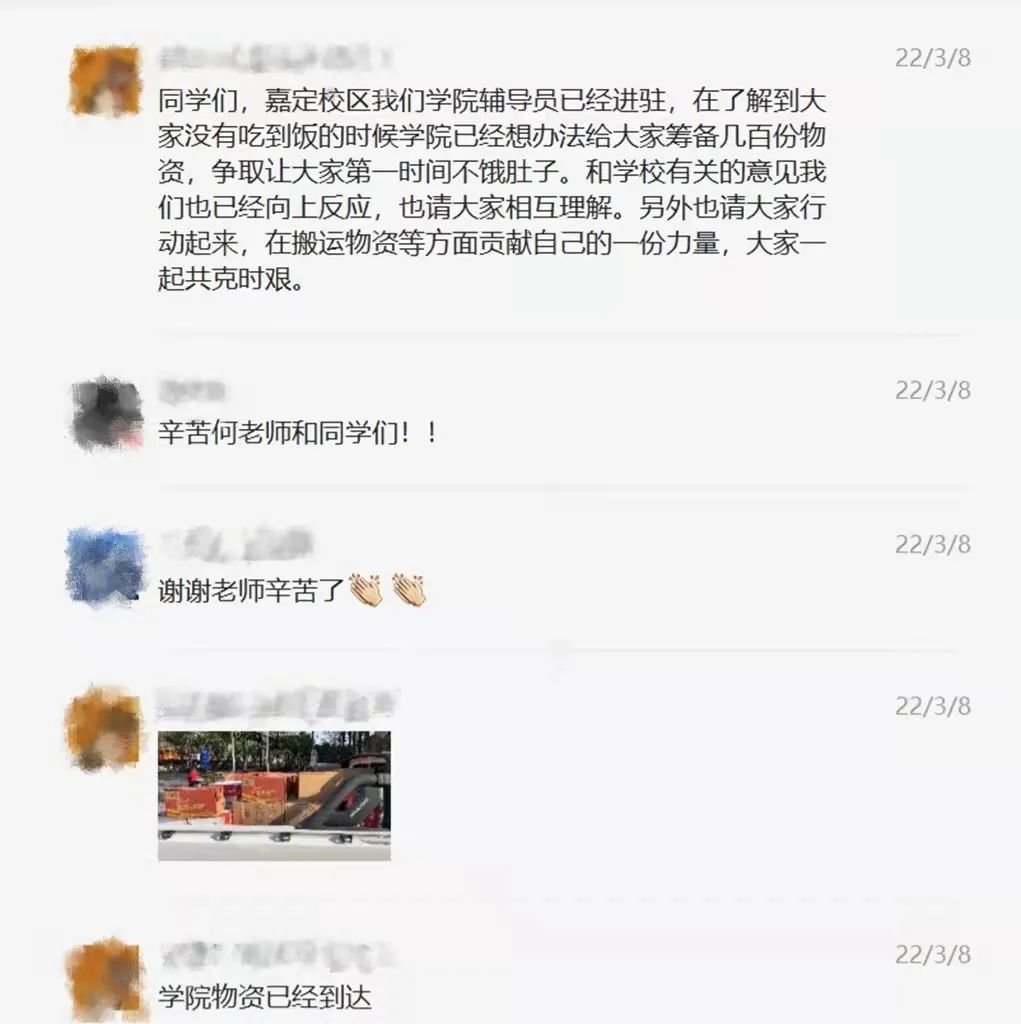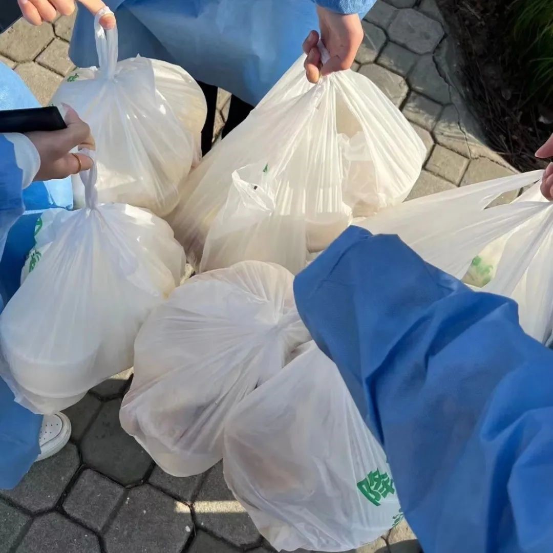 此次疫情来的很突然,给所有人都带来不可避免的影响。3月6日嘉定校区3号楼有一位同学核酸异常后,1、2、3号楼都进行了封楼,并采取了“足不出户”的措施。于是,我便联系了宿管阿姨成为了志愿者,负责给所在的2号楼4层宿舍送早餐以及配送物资。疫情之下,我很高兴能奉献一份力量,我是一名共产党员,理应站出来。
