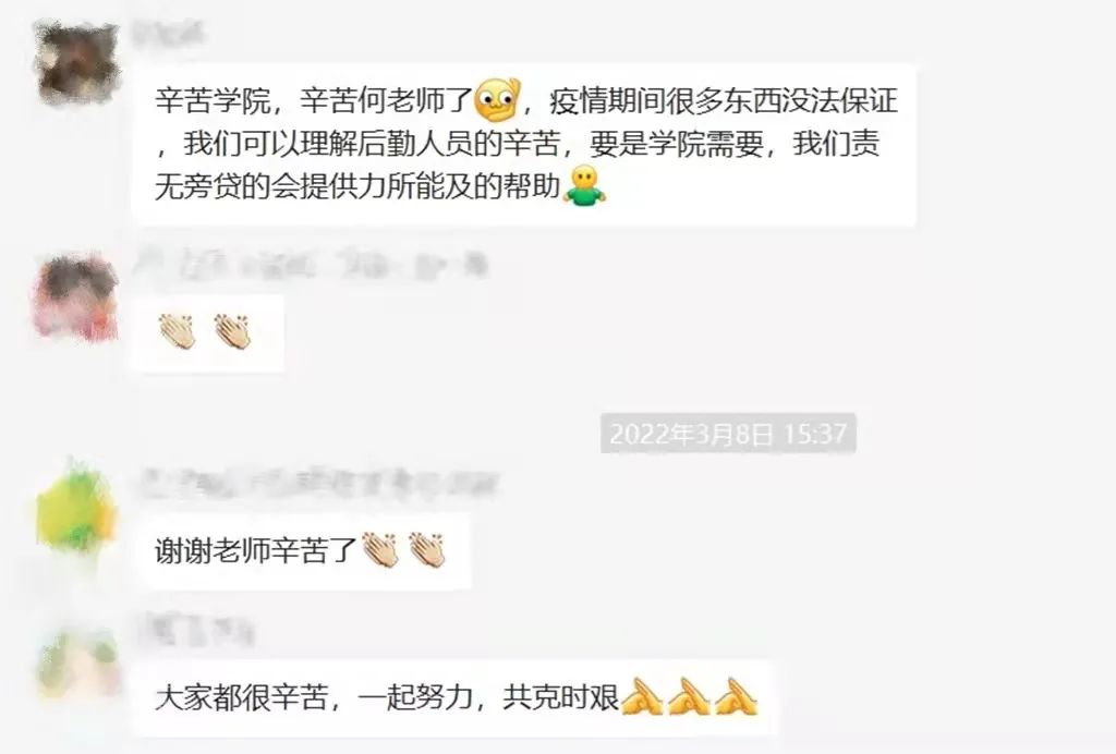 疫情发生以来,我感受到了许多温暖,在学院领导和老师的努力下,我们的生活得到了保障,从一开始的慌乱到如今的井井有条,这其中少不了各位领导、老师、志愿者和所有工作人员的共同努力。我相信,在党的领导和号召下,我们一定能战胜疫情,拥抱自然。