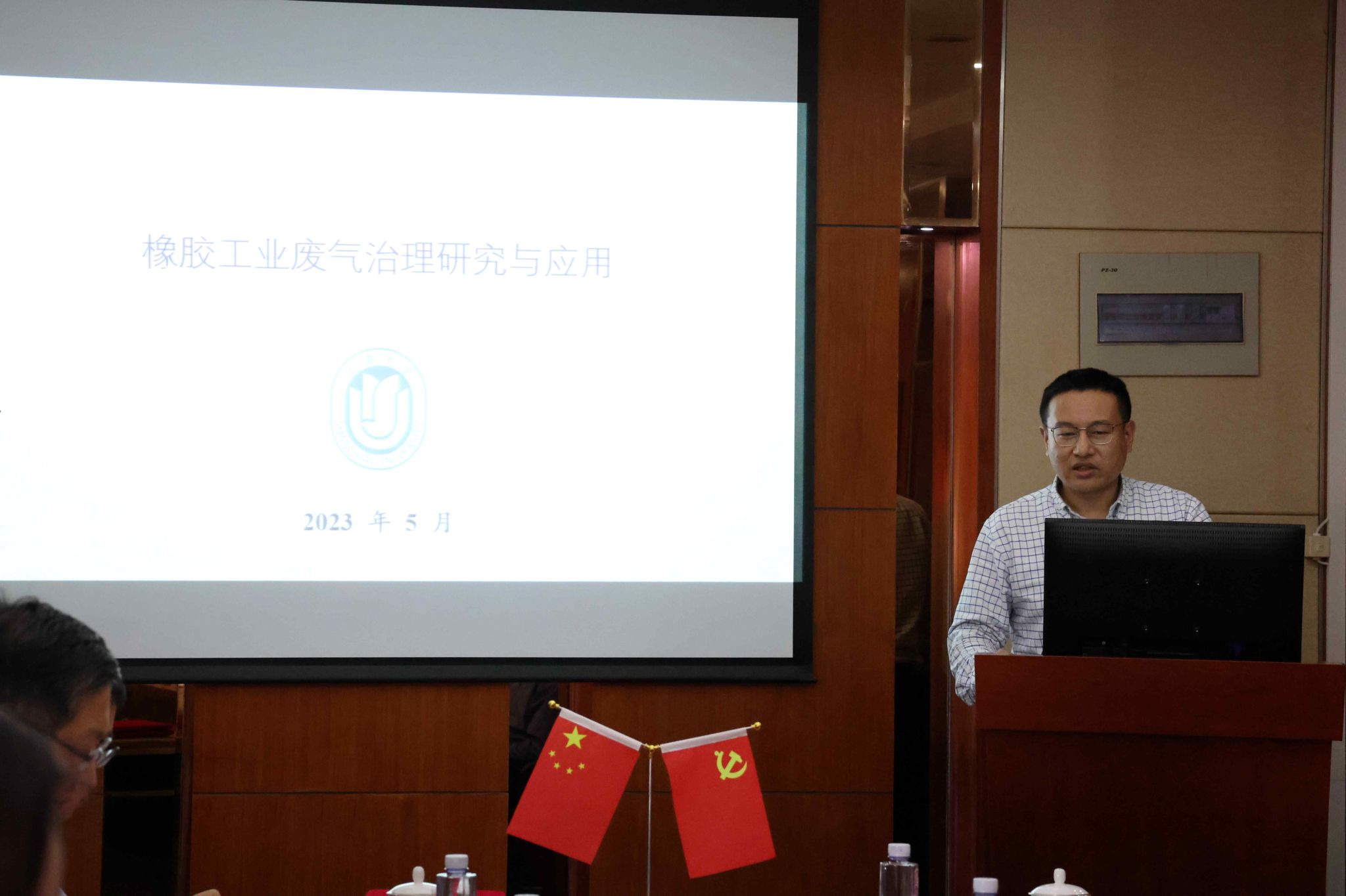 聘任仪式结束后,环化学院博士研究生施博从基于环境功能材料的废气收集和处理技术、废气治理技术的产业化应用等方面,向与会嘉宾介绍了学院在橡胶行业废气治理领域的主要工作,引起了与会者的浓厚兴趣和热烈讨论。