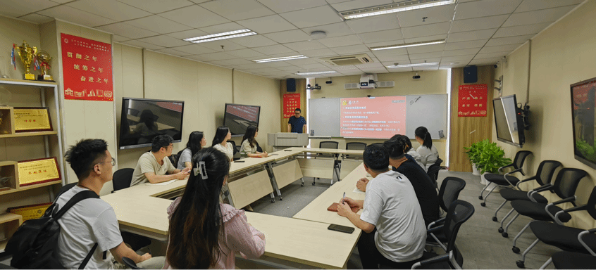 会上,环化学院党委副书记、副院长潘赟老师讲授“ESG理念在国家治理中的作用”主题教育专题党课,党政办邓美玲老师以 “青春与信仰同向同行”为题进行分享。两位老师在党课中激励同学们把青春奋斗融入党和人民事业中,坚定不移听党话、跟党走,在学习中汲取智慧,在实践中增长才干。