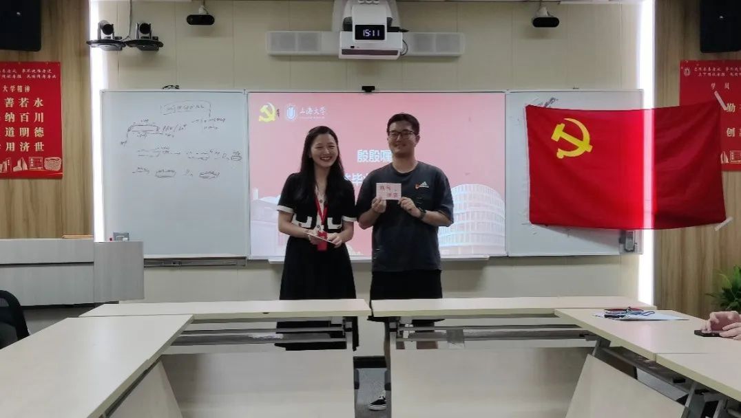 优秀党员在学生群体中引领示范作用显著。本次活动邀请20级研究生第二党支部书记蒋梦婷和党总支组织委员陶辰两位优秀党员分享自己与上大党建的故事。