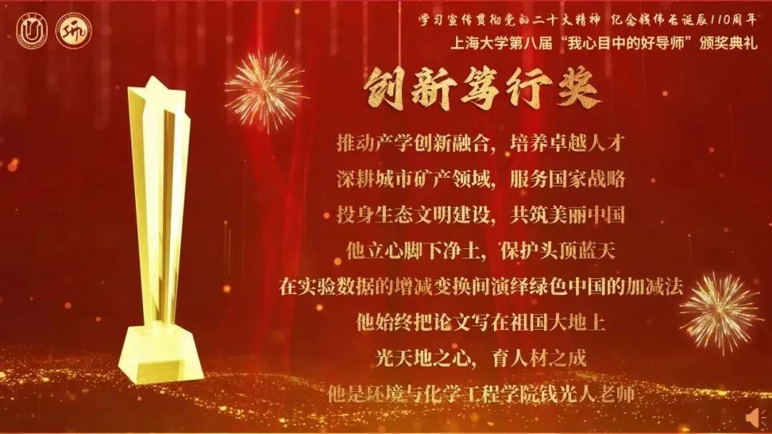 英国上市365钱光人教授获得“创新笃行奖”,在颁奖现场,钱光人教授通过视频的方式向广大研究生学子分享了心声。钱光人教授表示:今天获得的这份珍贵荣誉不仅属于个人,更是属于并肩奋斗二十多年的上大同事与同学们,今后他将继续带领团队朝着追求卓越、争创一流的上大梦坚定迈进。
