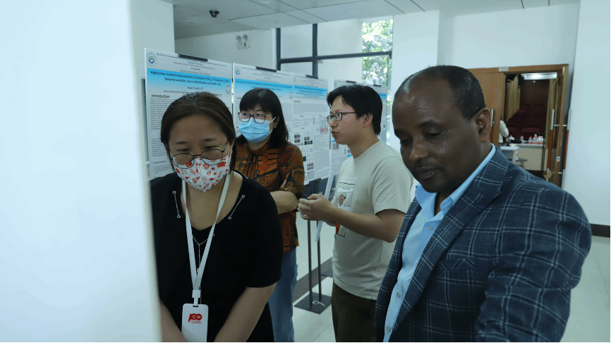 上午口头报告结束后,点评嘉宾移步海报展示区,听取海报讲解。