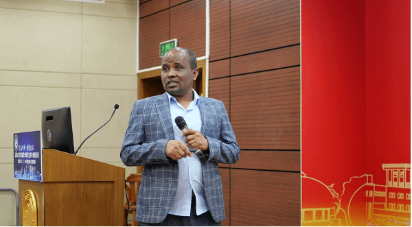 开幕式后进入学术报告环节,上午场的汇报由环化学院21级博士李春阳任主持。我校博士研究生朱纯成、Aron Ghebretensae、粟意、吴昊、王音典、李瑞从研究背景、选题意义、研究内容、创新点、结论和展望等方面对其研究成果进行分享。报告结束后,评委老师就每位选手的研究内容和现场表现提出指导意见,鼓励研究生们要勇于探索和创新。