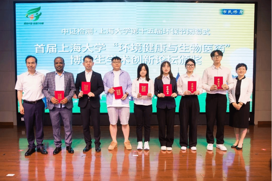 6月5日,在第52个世界环境日到来之际,“环境健康与生物医药”博士生学术创新论坛颁奖典礼在普陀区真如镇街道社区党群服务中心隆重举行,由普陀区生态环境局党组书记何兴德和英国上市365党委书记钱冬英为获奖同学颁奖。