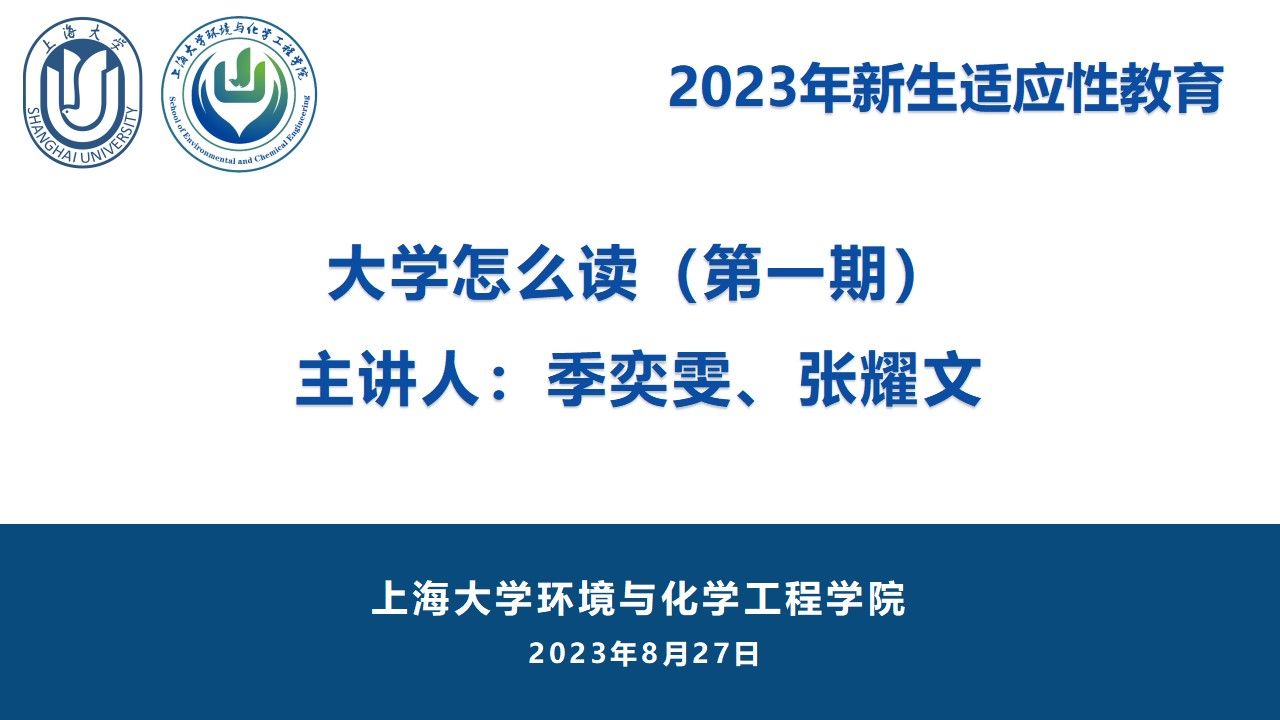 8月27日下午,环化学院新生适应性教育活动之“大学怎么读(第一期)”顺利举行。本次分享会邀请到2020级张耀文学长与季奕雯学姐作为主讲人,他们向新生们介绍了自己的大学经历,围绕课程学习、科研竞赛、学生工作等方面详细分享个人经验,建议同学们提前制定好个人规划,积极参加科研竞赛与各类实践活动,朝着奋斗目标不断努力,为未来发展创造更多的可能性。本次分享会增进了新老生之间的交流,帮助新生融入大学氛围、积累学习经验与明确发展方向。