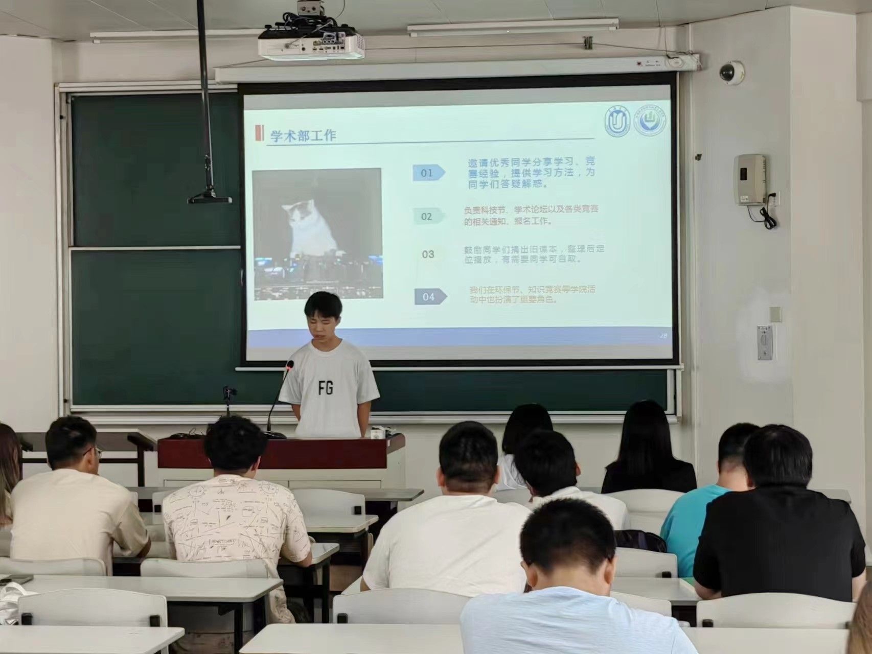 为保证招新工作顺利进行,学生会与环保社结合实际情况,将招新工作分为线上动员与线下宣讲两阶段。以首日教育为契机,两支学生组织的骨干们联合面向2023级环境工程(中外合作)与2022级化学工程与工艺分流学生开展招新宣讲。