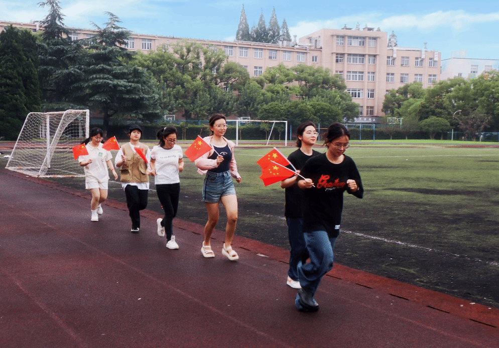 鲜艳的五星红旗在同志们的手中传递,奋进的姿态跑出加速度,以拼搏足迹践行爱国理念,在挥洒汗水中为祖国庆生。