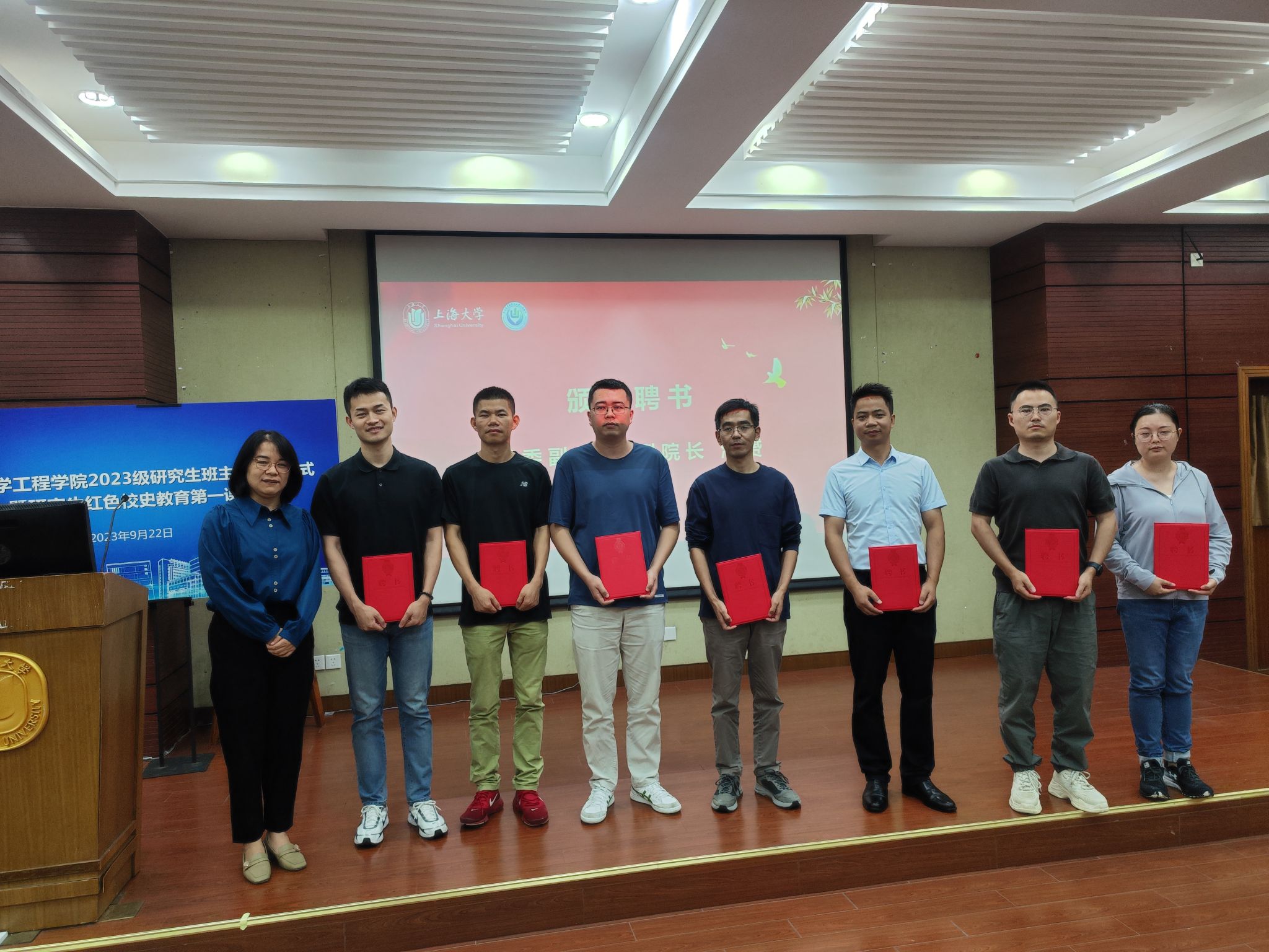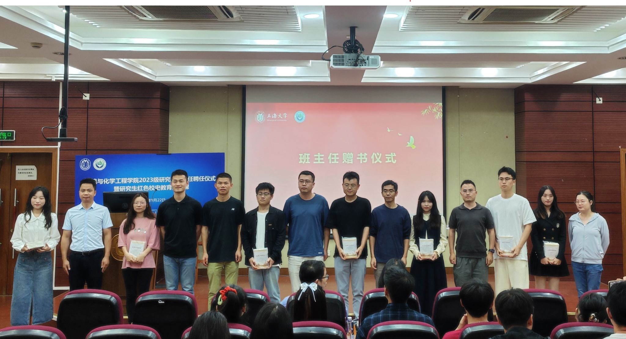 9月22日下午,我院2023级研究生班主任聘任仪式暨研究生红色校史教育第一课于宝山校区蔡冠深讲堂举行,学院党委副书记、副院长潘赟、副院长黄渊;环境一班邹权老师、环境二班魏亚强老师、化工一班耿弼江老师、化工二班车海龙老师、资环班谈佳妮老师、材化班杨超老师、博士班李彧老师、2023级研究生辅导员潘辰苑、2022级研究生辅导员蓝梓桀以及各班学生代表出席本次会议。会议由2023级研究生张诗婉主持。