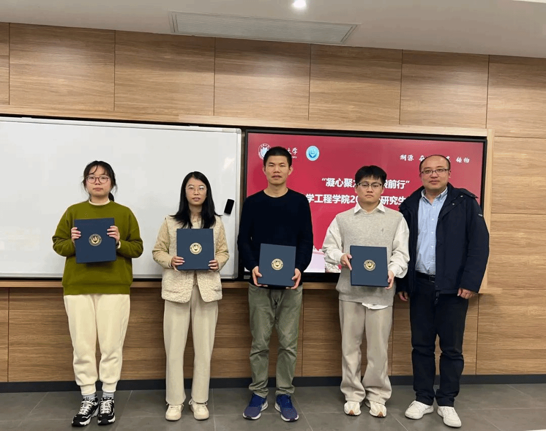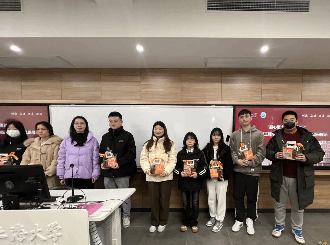 本次大赛通过前期线上投票形式,最终材化专硕班被评选为“最佳风采班级”,学校党委研究生工作部副部长周轶为获胜班级颁发奖品。。